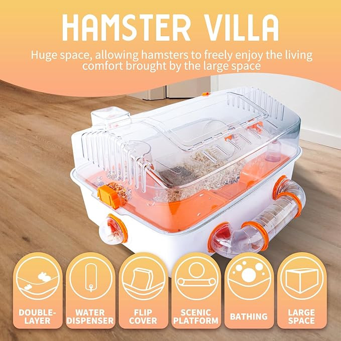 Give your furry friend the ultimate home with this spacious hamster villa cage. Designed with double layers, exercise tunnels, and built-in accessories, it offers comfort, fun, and safety all in one.