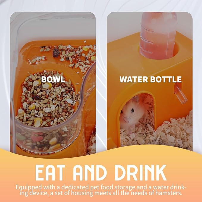 Built-In Tunnels: Transparent tunnels allow hamsters to explore and stay active.