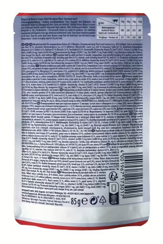 Happy Cat Meat in Sauce Culinary Bavarian Beef is a nutrient-rich, flavorful choice that supports urinary health, hydration, and overall feline well-being while providing a satisfying meal.