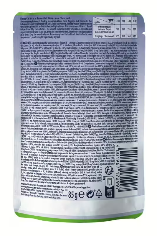 Happy Cat Meat in Sauce Culinary Pasture-Raised Lamb is a delicious and nutritionally complete choice, offering hydration, essential nutrients, and high-quality ingredients to keep your feline friend healthy and satisfied.
