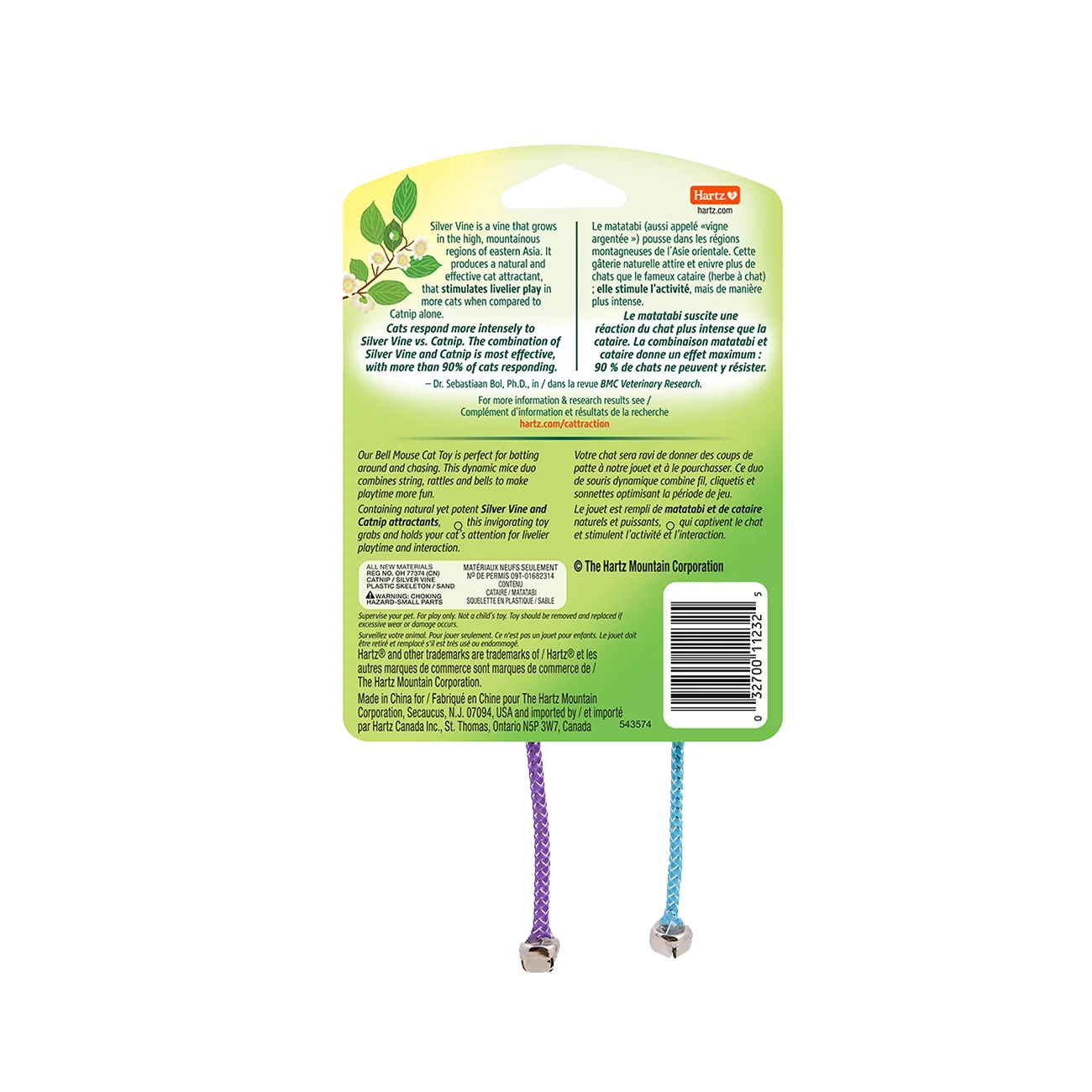 Bring home the Hartz Cattraction Bell Mouse toys and watch your cat enjoy livelier, more satisfying play powered by the natural benefits of Silver Vine & Catnip.