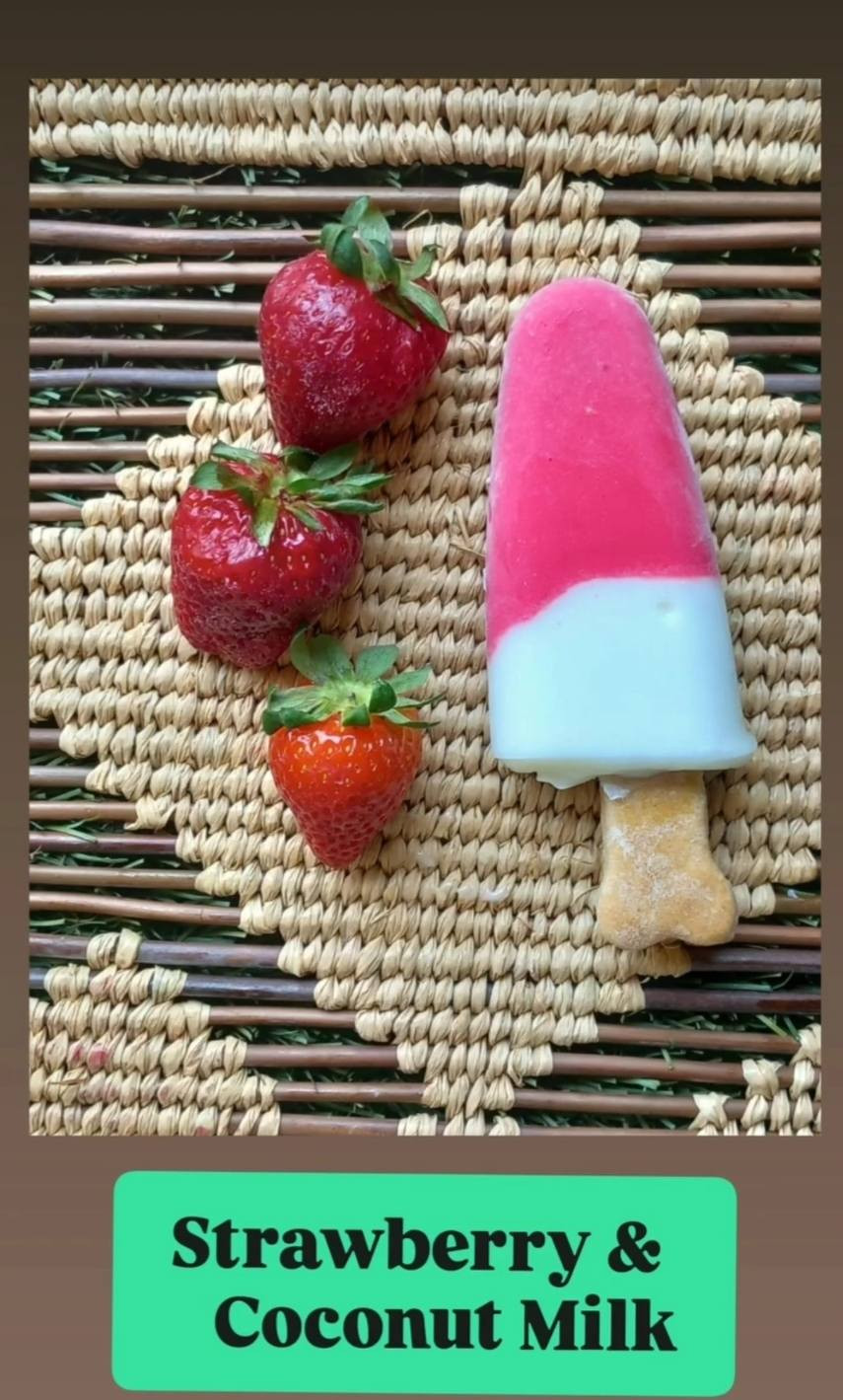Our Healthy Doggy Ice-Cream is dairy- and sugar-free, made from fresh fruits and coconut milk—a delicious, healthy, and safe frozen treat that helps your dog cool down on a hot day!