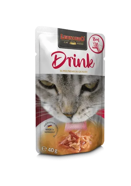 Motivate even the pickiest drinkers with Leonardo Drink Beef! Cats who don’t feel thirsty often will love this delicious hydration boost. The irresistible meaty flavor, made from chicken and beef broth, offers a rewarding experience while supporting urinary health. It’s easy to digest and ideal for supplementing your cat’s daily nutrition.