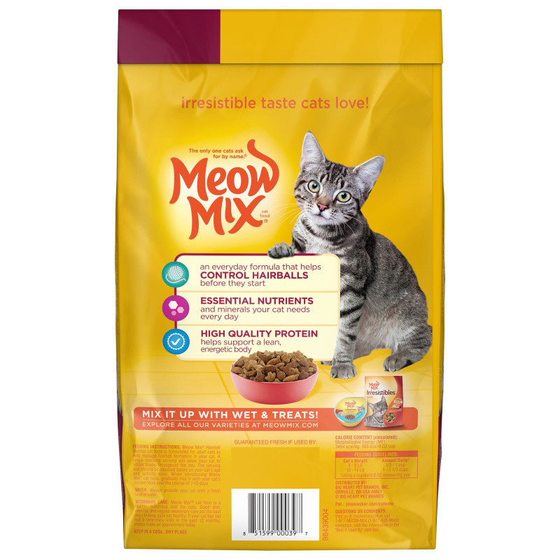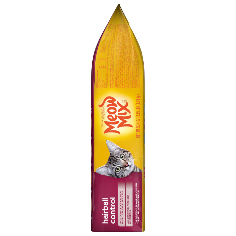 Meow Mix® Hairball Control cat food is formulated to meet the nutritional levels established by the AAFCO Cat Food Nutrient Profiles for adult maintenance.
