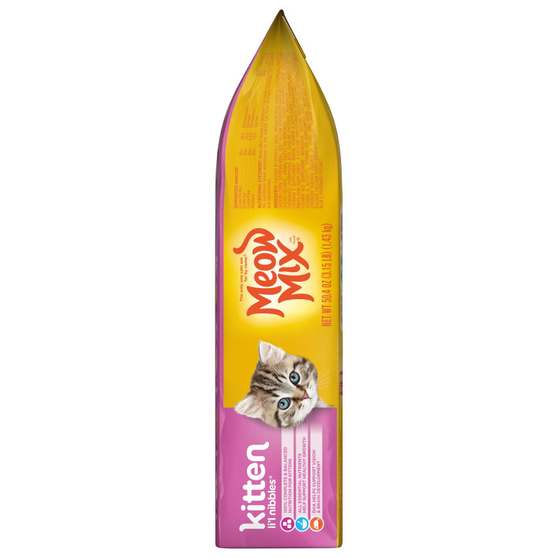 Meow Mix® Kitten Li'l Nibbles® is specially formulated to help kittens grow up healthy and happy. With tasty smaller kibbles, it provides all essential nutrients needed to support muscle growth and healthy brain development. Its irresistible flavors make every meal a delight.