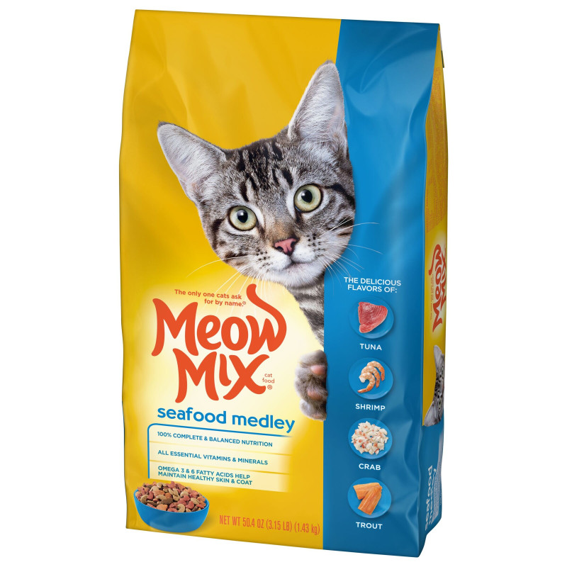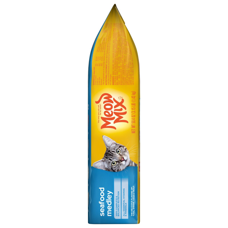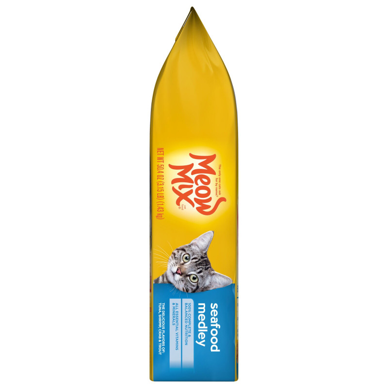 Meow Mix® Seafood Medley dry cat food is a delicious and nutritious choice for seafood-loving cats. With irresistible flavors of tuna, shrimp, crab, and trout, this flavorful medley ensures a happy and satisfied feline friend.