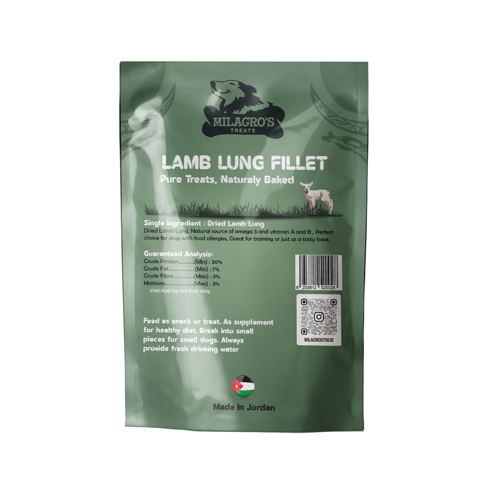 Light, crunchy, and packed with lean protein — Milagro’s Lamb Lung Fillet is a 100% natural, single-ingredient treat made from premium lamb lung, sourced and baked in Jordan.