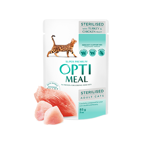 Optimeal Wet Cat Food For Sterilised Cats With Turkey And Chicken Fillet In Sauce
