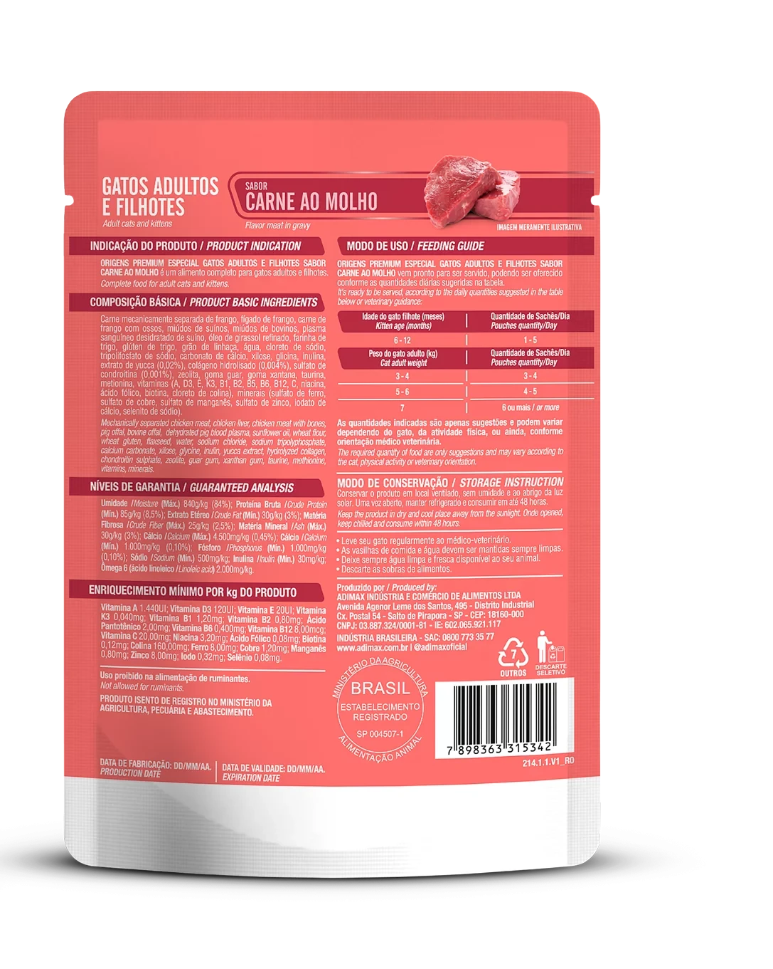 Give your cat a flavorful and nutritious meal with Origens Premium Especial Beef in Gravy. This complete wet food is specially crafted for both adult cats and kittens, providing essential nutrients for growth, maintenance, and overall well-being.