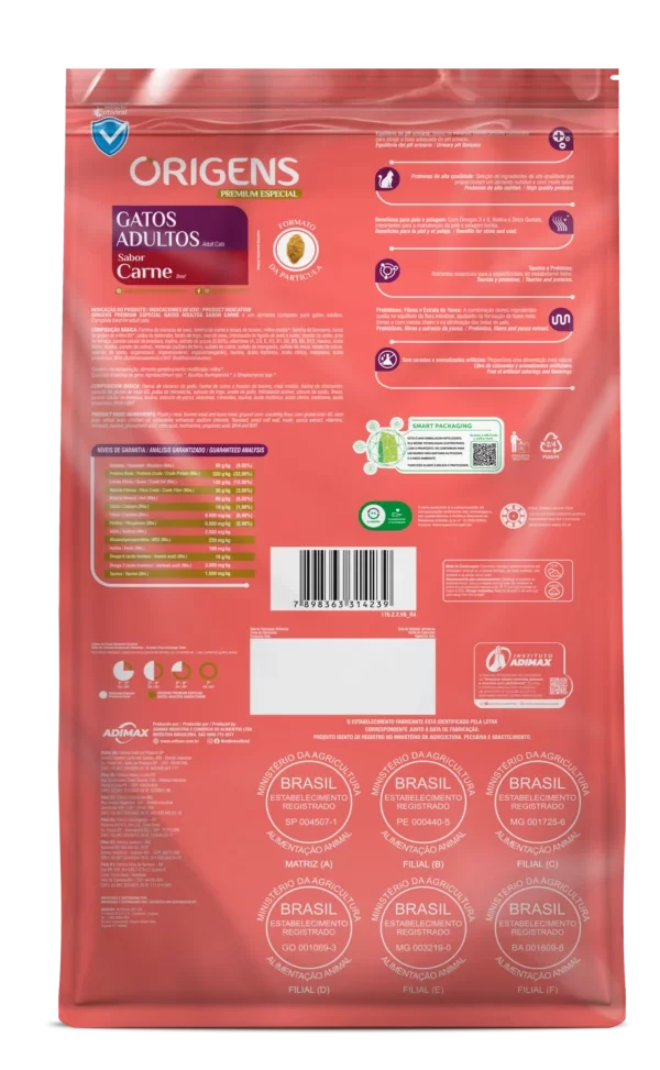 Origens is a line of Premium Special foods that nourishes the best of what there is: love. Promoting health and pleasure at every meal is an act of affection that strengthens bonds and prolongs days of joy, friendship, and unconditional love between guardians and their pets. Origens Adult Cats – Beef Flavor is crafted with high-quality ingredients and free from artificial colors or flavors. Recommended for active cats with no tendency to gain weight.
