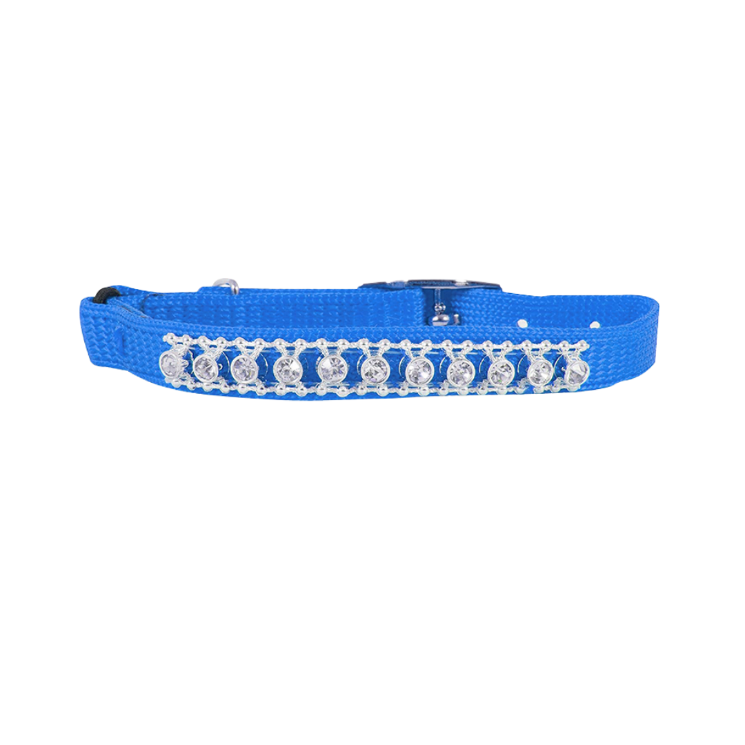 The adjustable fit suits neck sizes from 8–10 inches (20.3–25.4 cm) and is suitable for cats 6 lbs (2.7 kg) and up. A small bell is included to help you easily locate your cat, while the decorative crystal-style accents add an elegant finishing touch.