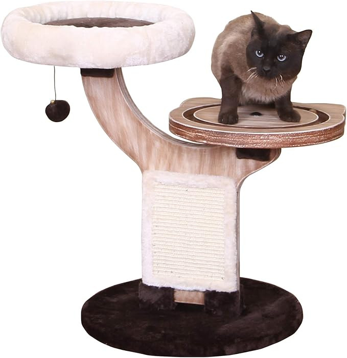 Give your cat a cozy, modern space to lounge, scratch, and play with the PetPals Twine Natural Wood 2-Level Cat Tree. Designed with a stylish natural-wood aesthetic and plush cream-and-brown fabrics, this compact structure fits beautifully in any home while keeping your cat active and comfortable.