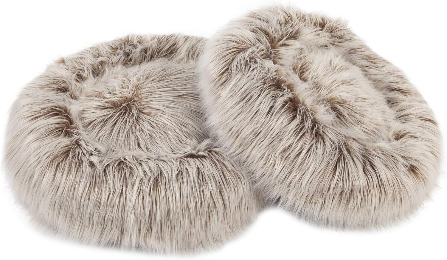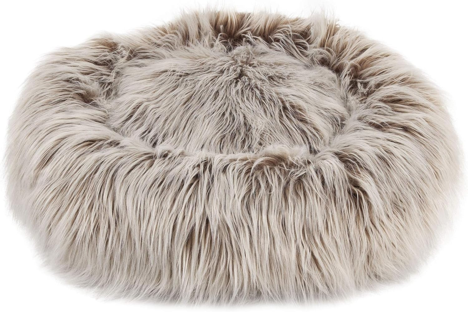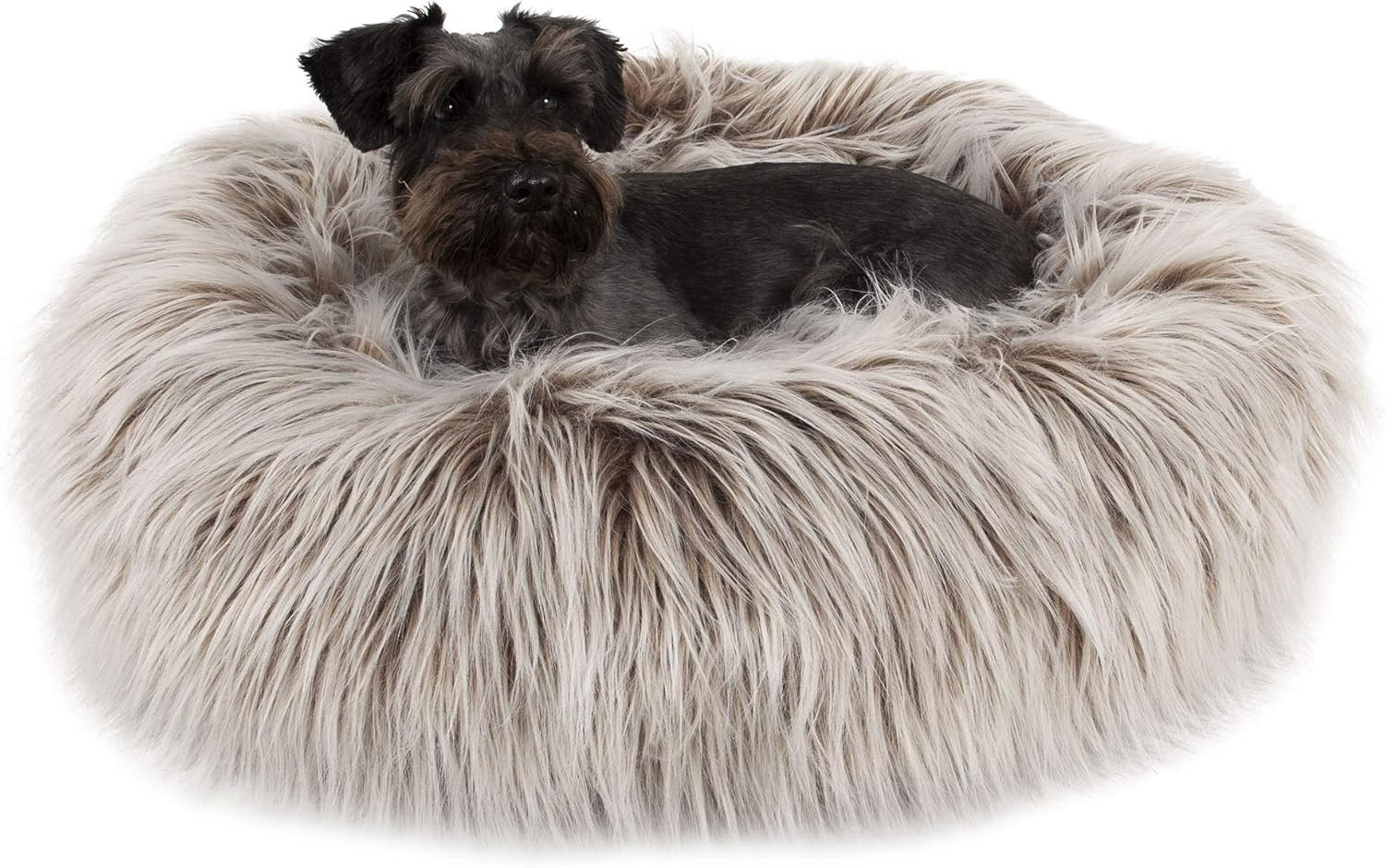 The SnooZZy Glampet Donut Bed offers a warm, ultra-soft, and comforting space thanks to its plush faux-fur design and deep, supportive structure. The round donut shape features deep pockets that naturally satisfy burrowing instincts, while the high-loft recycled polyester filling provides excellent cushioning and warmth for restful sleep.
