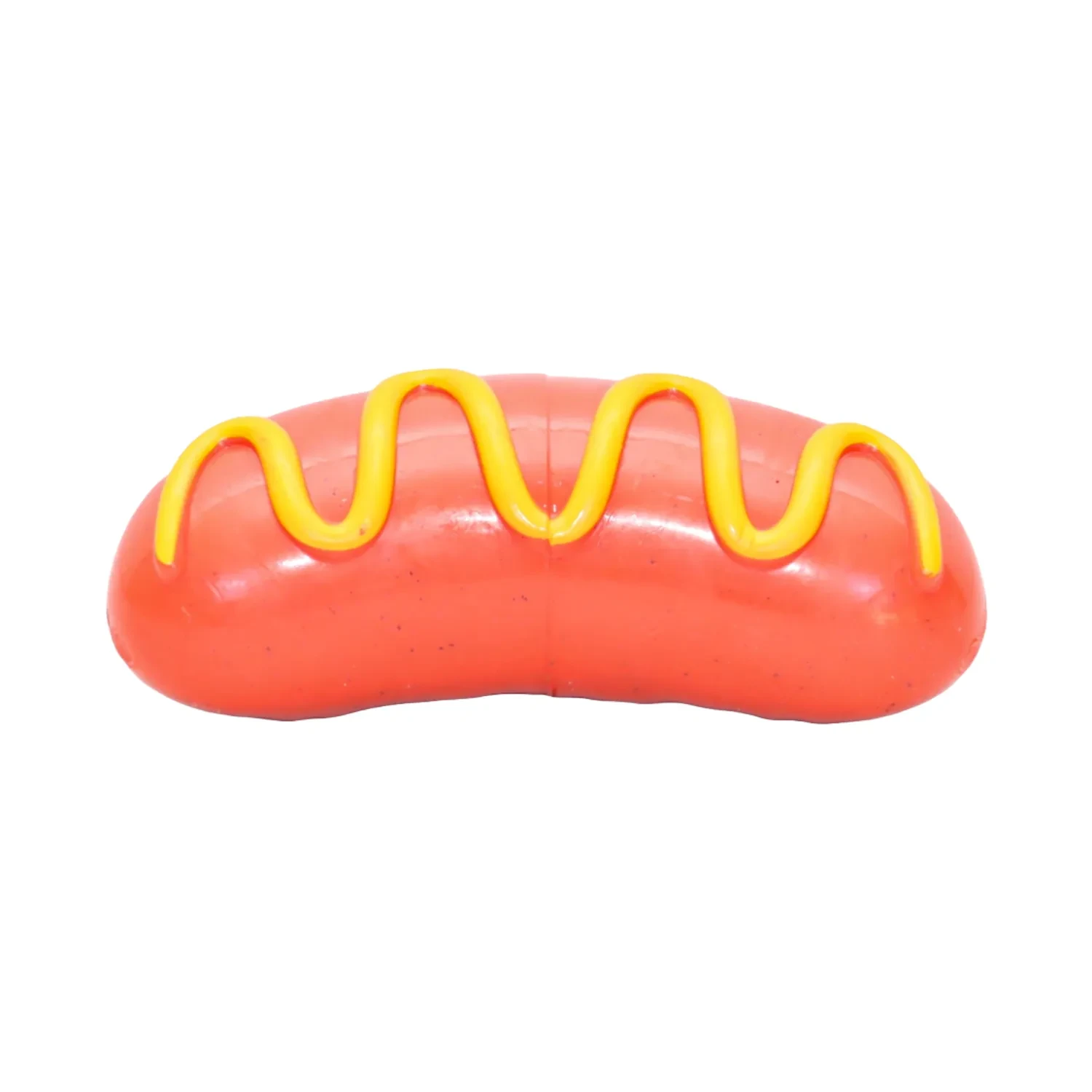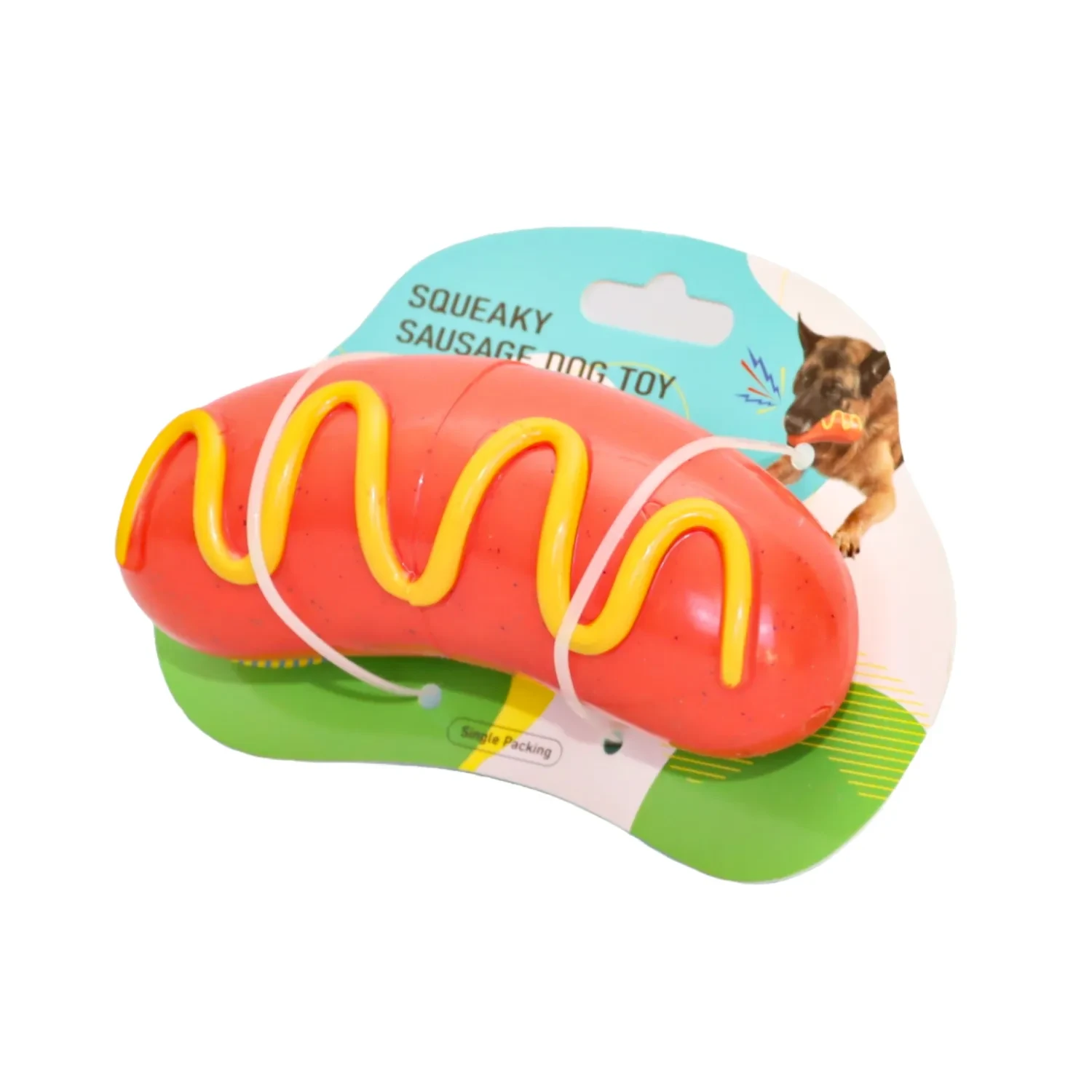 Make playtime extra fun with the Squeaky Sausage Dog Toy, designed to keep dogs entertained while supporting their chewing needs. Shaped like a real sausage with mustard topping, this toy not only looks fun but also delivers hours of chewing and squeaking joy.