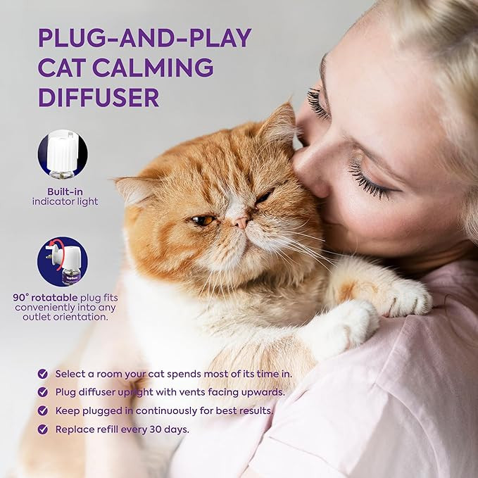 Perfect for easing multi-cat conflict, adjusting to new environments, or keeping your cat relaxed during loud noises, travel, or vet visits.