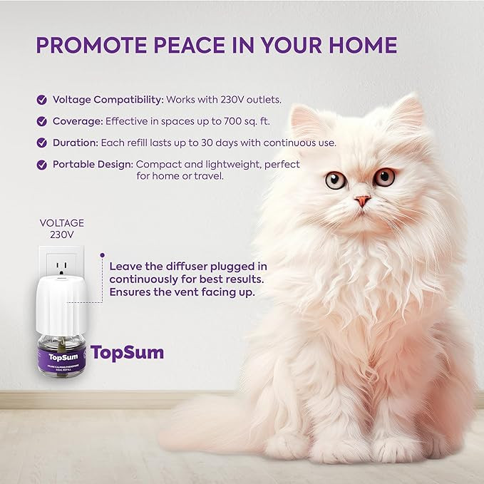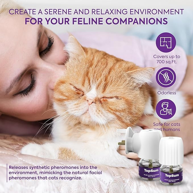 Create a peaceful and cozy environment for your cats with the TopSum Feline Pheromone Diffuser Kit.