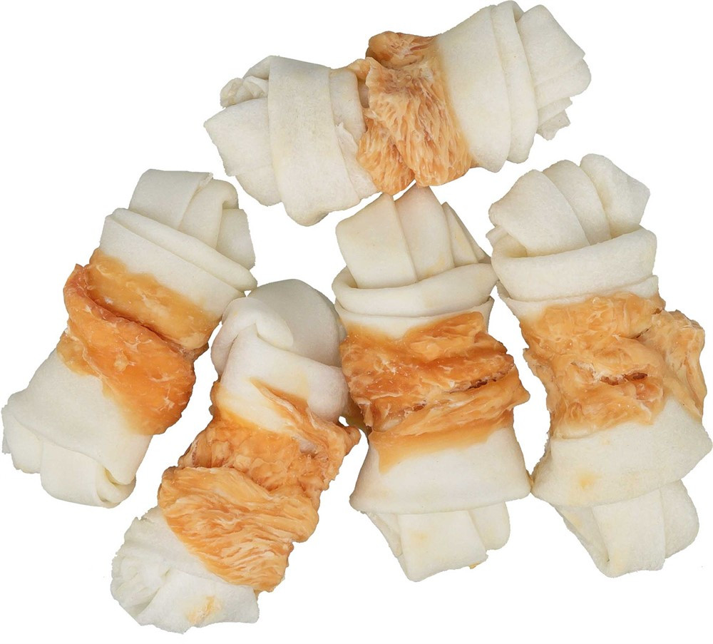 Trixie Denta Fun Knots with Chicken combine chewy rawhide bones with tasty chicken meat, offering a perfect balance between dental care and rewarding flavor. The natural chewing motion helps reduce plaque and tartar build-up, while the irresistible chicken coating makes it every dog’s favorite treat.