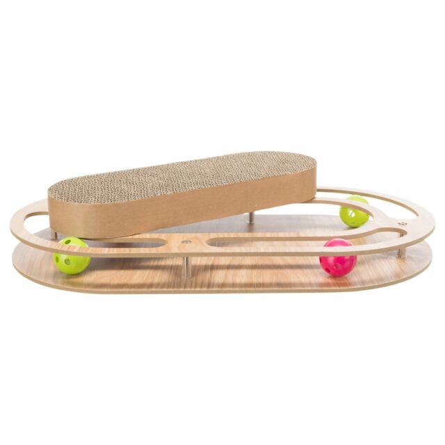 Trixie Scratching Cardboard with Wooden Frame is a sturdy and engaging scratching surface designed to satisfy your cat’s natural scratching instincts while encouraging interactive play. The solid wooden frame adds stability, while integrated toy balls and catnip enhance engagement.