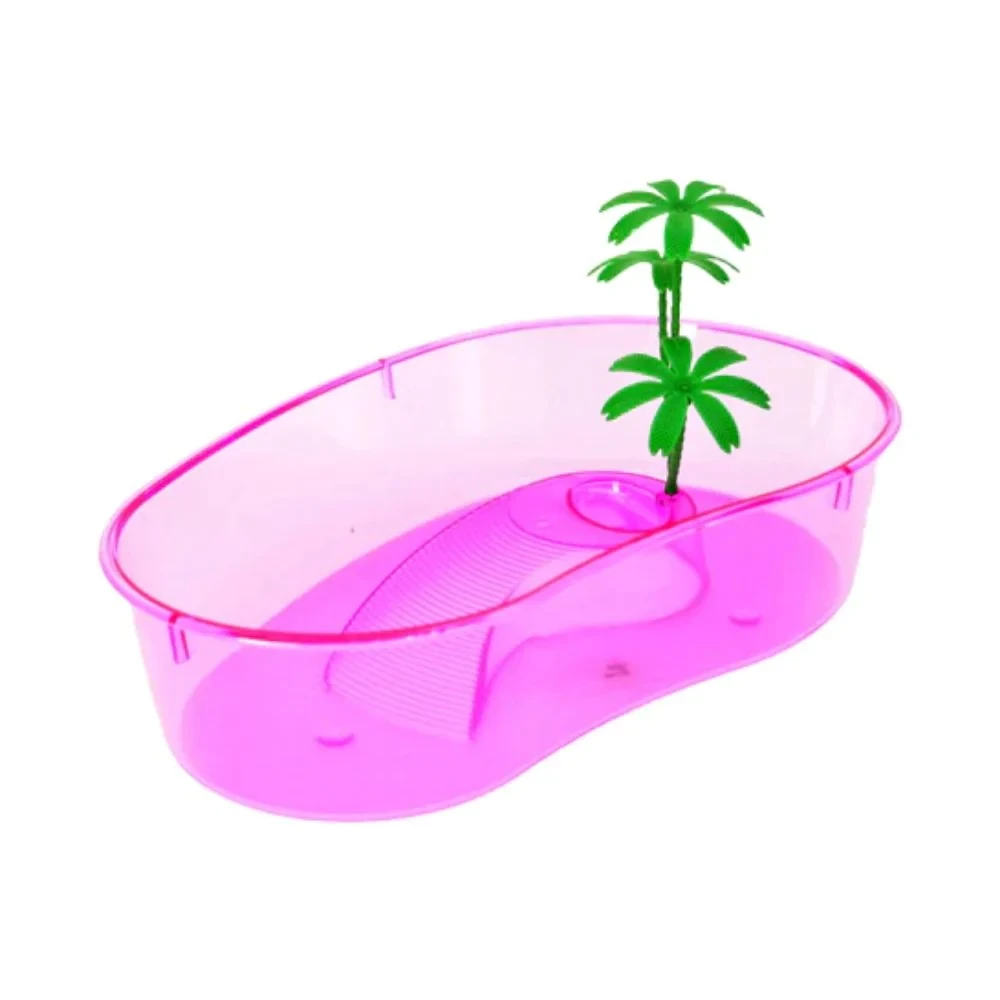 Give your small turtle a fun, safe, and easy-to-maintain home with this compact plastic habitat featuring a built-in basking ramp and decorative palm tree. Designed for beginners and young pet keepers, this habitat offers a comfortable environment suitable for small turtles and similar small aquatic pets.