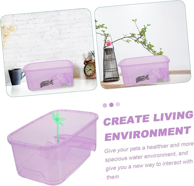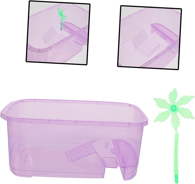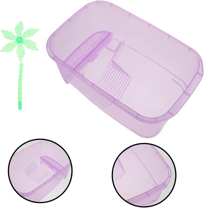 This Purple Turtle & Reptile Tank provides a safe, spacious, and practical home for turtles and small reptiles. Made from durable plastic material, it features a built-in basking ramp and a detachable palm decoration to simulate a natural environment. The transparent design allows for easy observation and maintenance, while the compact size makes it ideal for desktops, shelves, or small spaces.