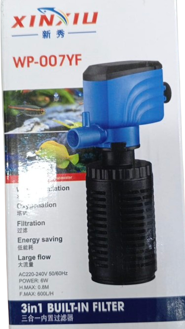 The XINXIU WP-007YF is a compact and efficient aquarium filter designed for both freshwater and seawater tanks. Its 3-in-1 functionality ensures superior filtration, oxygenation, and water circulation to maintain a clean and healthy aquatic environment.